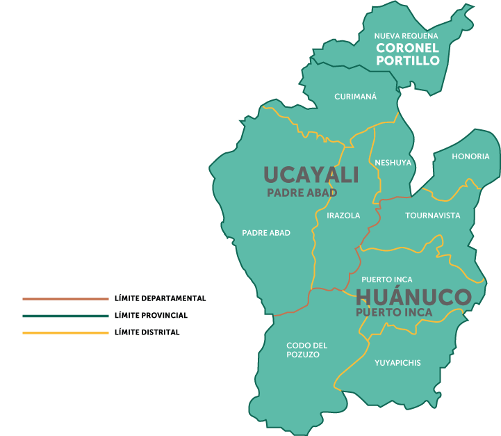 El proyecto se implementó en la provincia de Puerto Inca en Huánuco y en la provincia de Padre Abad y el distrito de Nueva Requena en Ucayali. A partir del trabajo articulado con las instituciones públicas, sus resultados trascendieron estos territorios y generaron beneficios para la Amazonía peruana.